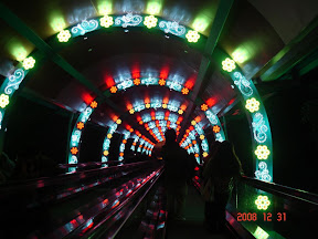 從前的小火車不見了....變成閃亮亮的彩色隧道手扶梯